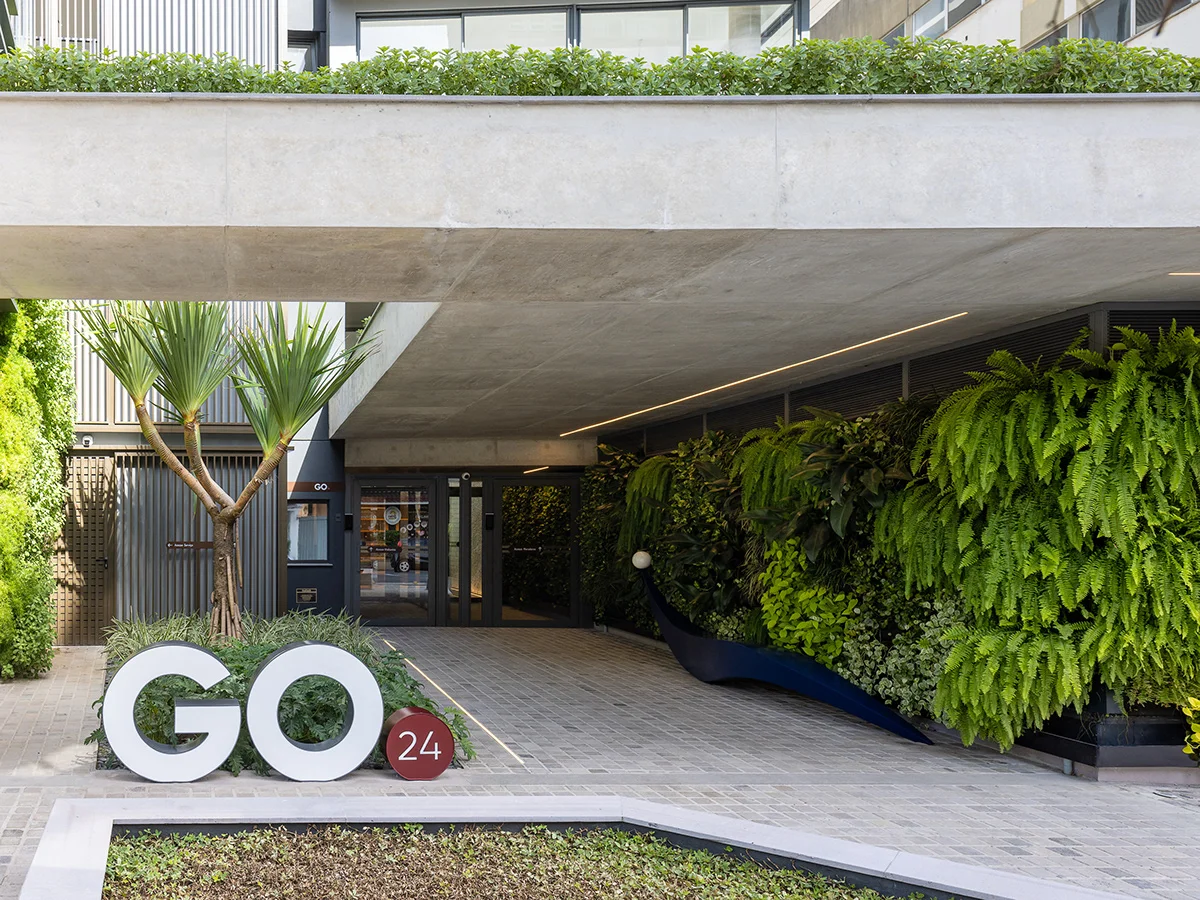 GO 24公寓位于巴西阿雷格里港,设有健身房、洗衣店、游泳池、停车场和酒吧等设施,Maena工作室受邀为其进行导视系统设计。