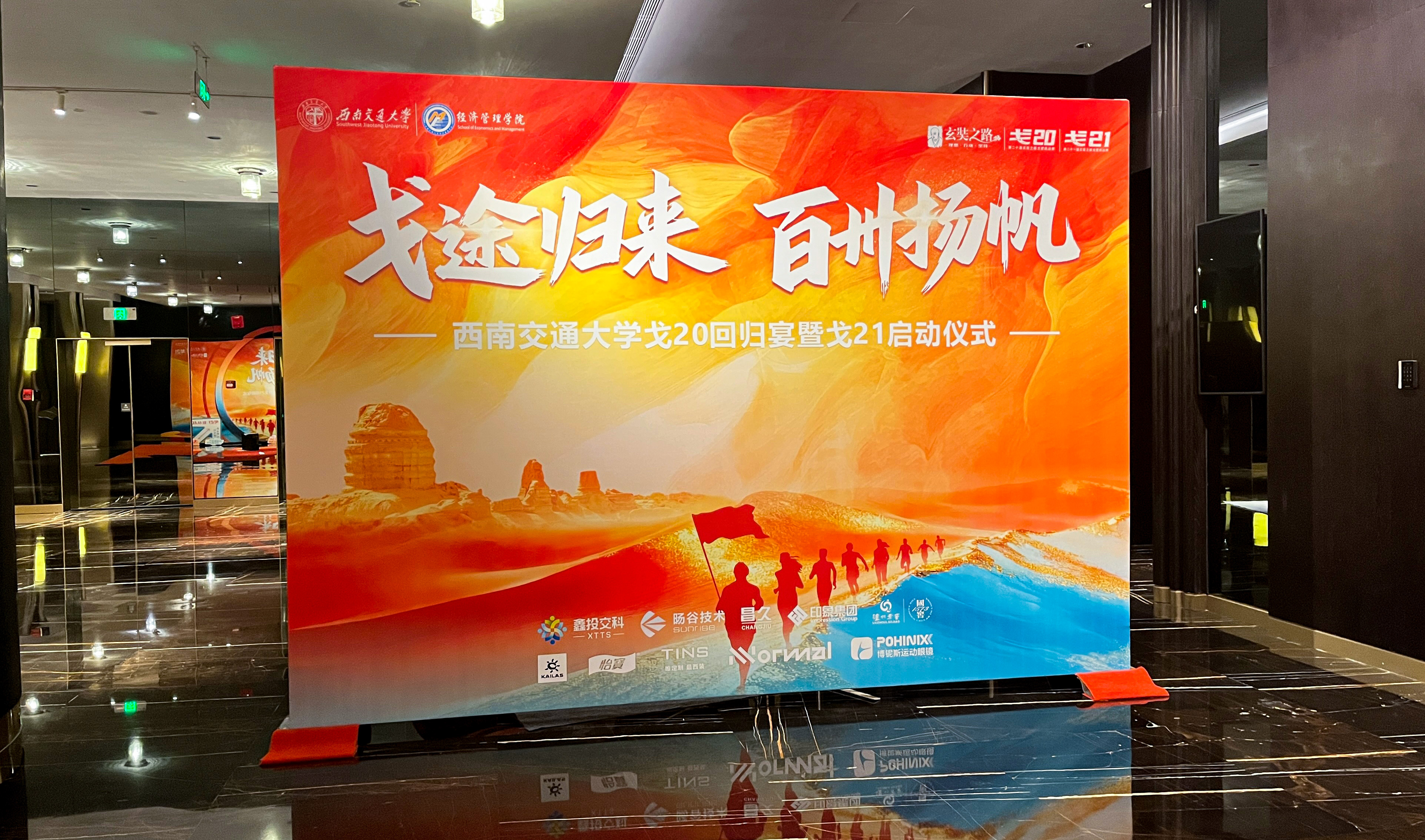 12月6日,西南交通大学戈20(第二十届玄奘之路商学院戈壁挑战赛)回归宴暨戈21(第二十一届)启动仪式在万众期待中圆满举行。作为本次活动的核心承接方、全程筹备方及共同参与方,我公司以全链条专业服务深度介入活动,从前期的整体策划、方案精研、物料定制,到现场的执行落地与全程品质把控,全方位保障了这场兼具荣耀庆典与征程启航意义的盛会顺利开展。
